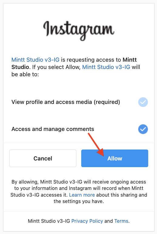 - Allow Instagram permissions.