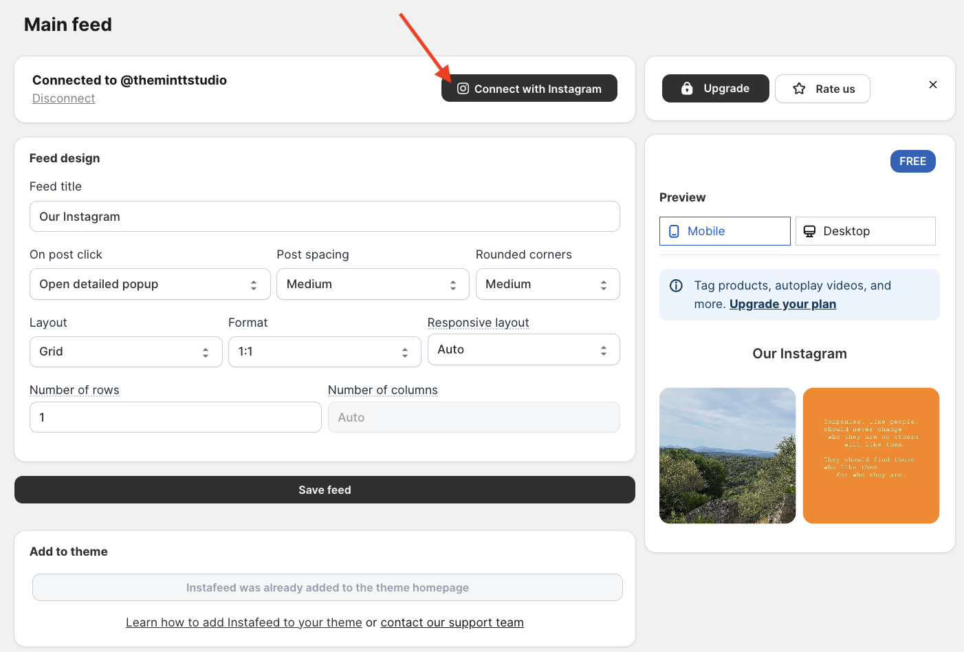 - Go to Apps > Instafeed.