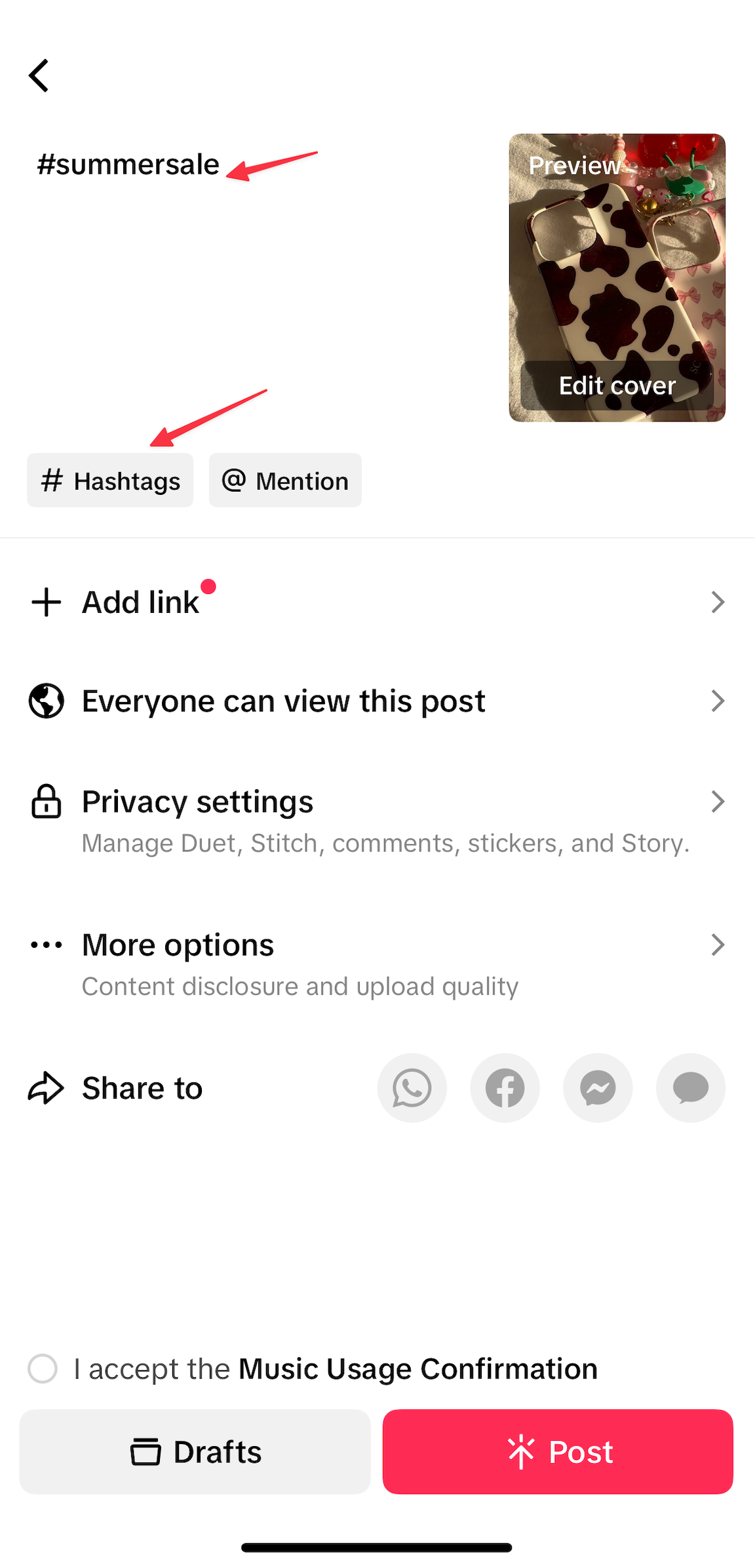 Step 1 - Add hashtags when posting on TikTok